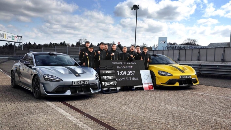 Спортседан Xiaomi SU7 Ultra стал первым серийным дорожным китайским автомобилем, которому удалось установить официальный рекорд Нюрбургринга. С временем круга 7 мин 04,957 с Xiaomi SU7 Ultra сместил с первого места в классе представительских электромобилей Porsche Taycan Turbo GT. Прототип Xiaomi SU7 Ultra проехал Северную петлю Нюрбургринга ещё осенью прошлого года, показав время 6 мин 46,874 с, но прототип — не серийная машина, поэтому в официальной таблице рекордов Нюрбургринга его и разместили в классе прототипов, а именно на четвёртом месте после Porsche 919 Hybrid Evo (5 мин 19,546 с), Volkswagen ID.R (6 мин 05,336 с) и Lotus Evija X Hypercar (6 мин 24,047). От серийного Xiaomi SU7 Ultra прототип отличается облегчённым кузовом с развитым аэродинамическим оперением и модифицированным шасси. Серийный Xiaomi SU7 Ultra вышел на рынок в феврале этого года, с тех пор он установил несколько рекордов на локальных, китайских трассах, а 1 апреля состоялся эпохальный заезд на Нюрбургринге, о котором однако было официально объявлено только сегодня. С временем круга 7 мин 04,957 с серийный Xiaomi SU7 Ultra превзошёл рекорд Porsche Taycan Turbo GT (7 мин 07,551 с) и занял первое место в классе представительских электромобилей. Заметим также, что время круга Xiaomi SU7 Ultra превосходит и время круга электрического суперкара Rimac Nevera, помещённого в класс суперкаров, — 7 мин 05,298 с. Таким образом Xiaomi SU7 Ultra является на данным момент самым быстрым серийным дорожным электромобилем Нюрбургринга. Пилотировал китайский спортседан опытный бельгийский гонщик Винсент Радермекер. Porsche Taycan Turbo GT установил свой рекорд с опциональным трековым пакетом Weissach Package, а Xiaomi SU7 Ultra для рекорда понадобился собственный Track Package — он был представлен в начале этого месяца и стоит 100 000 юаней (1,09 млн рублей в переводе по текущему курсу), тогда как сам Xiaomi SU7 Ultra стоит от 529 900 юаней (5,78 млн рублей). В Track Package входят регулируемые адаптивные амортизаторы Bilstein EVO R, карбон-керамические тормозные диски Akebono в сочетании с износостойкими колодами Endless, полуслики Pirelli P Zero Trofeo RS, более эффективный аэродинамический обвес из углепластика с «дырявым» капотом и фиксированным антикрылом на корме. Заднее сиденье при установке Track Package демонтируется (вместо него можно установить полукаркас безопасности), стандартные передние кресла заменяются более плотными гоночными ковшами, а в отделке более широко используется углепластик. Кроме того, именно Track Package позволяет активировать специальный ездовой режим, который позволяет выжать максимум из силовой установки и шасси. Сама по себе силовая установка стандартная: три электромотора выдают совокупно 1548 л.с. и 1770 Нм, разгон до 100 км/ч занимает 1,98 с, максимальная скорость — 350 км/ч. Ёмкость батареи — 93,7 кВт·ч, запас хода на одной зарядке в сочетании с Track Package — 520 км по циклу CLTC. Компания Xiaomi подчёркивает, что не собирается останавливаться на достигнутом, продолжит и дальше утюжить Нюрбургринг на своих машинах, «полируя» их ездовые качества и готовясь к новым рекордам. От Porsche мы, конечно, тоже ждём ответа «китайским выскочкам».