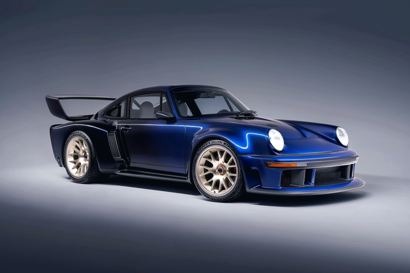 Американская компания Singer Vehicle Design начала мелкосерийное производство рестомода DLS Turbo на базе Porsche 911 поколения 964 и показала первый клиентский экземпляр, получивший имя Sorcerer, что в переводе с английского на русский означает «Колдун» (альтернативные варианты перевода — волшебник, чародей, маг, шаман). Премьера Singer DLS Turbo состоялась ещё летом 2023 года на Фестивале скорости в Гудвуде, но поскольку портфель заказов Singer Vehicle Design всегда полон, а изготовление каждой машины — это длительный и трудоёмкий процесс, то лишь вчера компания продемонстрировала первый клиентский экземпляр, наречённый именем Sorcerer и окрашенный в градиентный синий цвет Fantasia Blue (передок светлее, чем корма). Сразу донесём до читателя просьбу пресс-службы Singer Vehicle Design и назовём полное, правильное с точки зрения производителя имя модели: Porsche 911 Reimagined by Singer — DLS Turbo. Для СМИ, правда, оно слишком громоздкое, поэтому мы, как и наши коллеги из других изданий, будем назвать этот спорткар проще — Singer DLS Turbo. Полное имя указывает на то, что в основе модели лежит оригинальный классический Porsche 911 поколения 964, что выпускался в период с 1989 по 1994 год. От донорской машины Singer Vehicle Design берёт в работу только остов кузова и блок цилиндров двигателя, а всё остальное в Singer DLS Turbo совершенно новое. Остов кузова тщательно реставрируется и усиливается, практически все наружные панели изготовлены из углепластика. Владелец экземпляра Sorcerer выбрал агрессивный, ориентированный на трек вариант аэродинамического обвеса, а в качестве альтернативы компания предлагает более лаконичный дорожный вариант обвеса — в теории любой заказчик Singer DLS Turbo может купить оба варианта и монтировать их самостоятельно в гараже. Оба варианта обвеса стилизованы под звезду гонок на выносливость из 1970-х — Porsche 934/5, но трековый вариант точнее передаёт облик исторического прототипа. Салон у Singer DLS Turbo Sorcerer строго двухместный: за лёгкими ковшеобразными креслами водителя и единственного пассажира находятся крестообразная трубчатая силовая распорка и багажная полка. Основной материал отделки — натуральная кожа серого цвета Pebble Grey, центральные алькантаровые вставки в креслах окрашены в такой же цвета, а вот окантовка выполнена в цвете шампанского. Новая передняя панель дотошно воспроизводит эстетику классических Porsche 911, но изготовлена из лёгких современных материалов. Экземпляр по имени Sorcerer сохранил аналоговый щиток приборов, хотя Singer Vehicle Design предлагает в качестве альтернативы электронное табло в гоночном стиле. Блок цилиндров оппозитной «шестёрки» с воздушным охлаждением модифицирован, рабочий объём доведён до 3,8 л, установлены новые головки с водяным охлаждением и четырьмя клапанами на цилиндр. Новая система охлаждения снабжена электрическим вентилятором. Новый выпускной коллектор изготовлен из инконеля и титана, патрубки выведены в бок через вырезы в задних крыльях, чтобы не ограничивать «размах» заднего диффузора. Благодаря двум турбокомпрессорам с изменяемой геометрией двигатель Singer DLS Turbo выдаёт более 700 л.с. и 750 Нм, максимальная частота вращения коленвала превышает 9000 об/мин. Вся мощность передаётся на задние колёса через 6-ступенчатую МКП. Динамические характеристики по-прежнему не разглашаются. Подвеска у рестомода совершенно новая, спроектированная по гоночным канонам, спереди установлены двойные поп